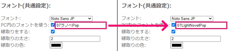 英語表記の調べ方はフォント名の英語名の確認方法に記載しております。