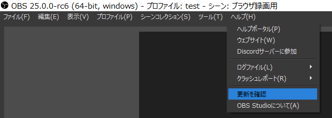 OBSを更新しましょう下の画像のようにしてOBSを更新するか、最新バージョンをダウンロードしてインストールし直しましょう。
