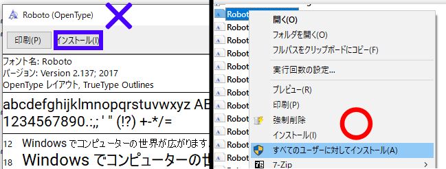 原因:フォントが「Windowsのフォントフォルダ」ではなく「ユーザーのフォントフォルダ」にインストールされている