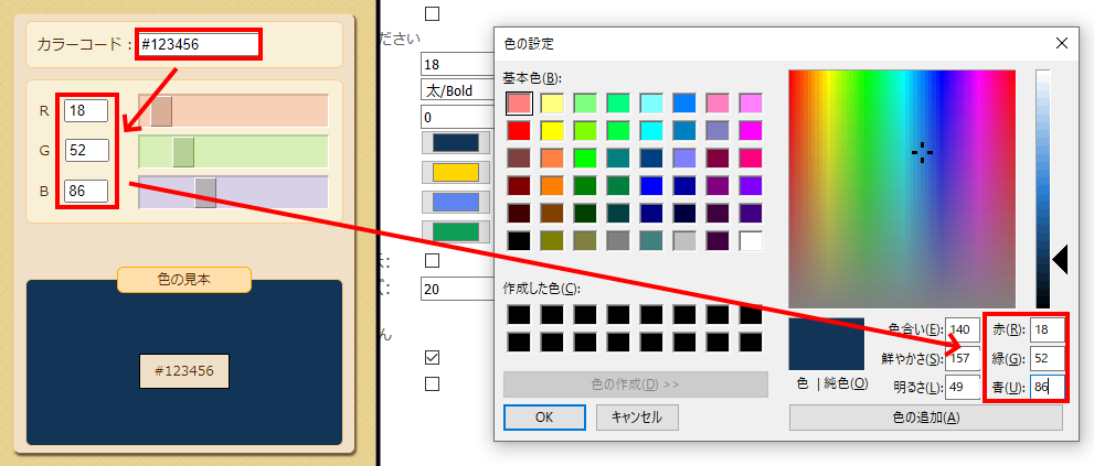 - 色の設定でカラーコード(#123456など)を使いたい